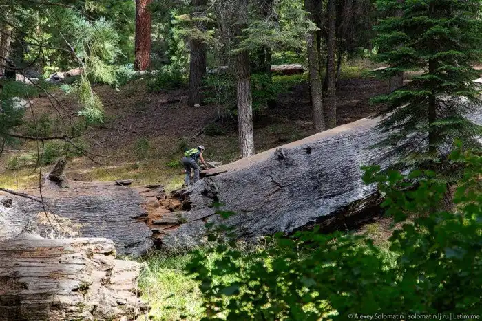 Или, вот, поваленное огромное дерево. На фото видно, что оно просто большое, но на фоне леса не понятно, насколько: