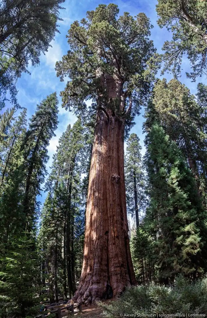 Самым большим в мире считается дерево Генерала Шермана. Первое по объёму и массе дерево на Земле. Высота «Генерала Шермана» — 83.8 м, масса оценивается в 1910 тонн (и это оценка 1938 года), объём ствола — в 1487 м³, возраст — в 2300—2700 лет:
