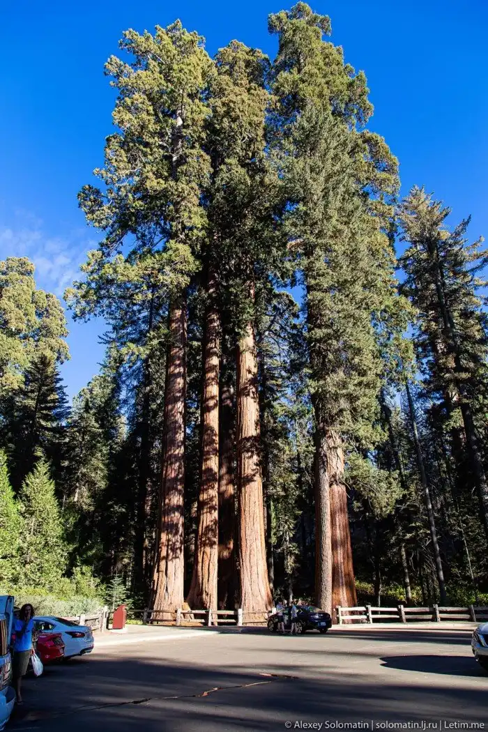 Даже эти четыре экземпляра возле парковки кажутся огромными гигантами в сравнении с автомобилями: