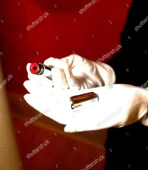 На самом деле, это помада-пистолет времен холодной войны, которая получила название "The Kiss of Death" (Поцелуй смерти). Она использовалась шпионами и сотрудниками КГБ, а представляла собой однозарядное 4,5 мм огнестрельное оружие. Впервые такую необычную помаду американцы отобрали у провалившего свое задание шпиона в 1965 году, а теперь она выставлена в музее холодной войны.