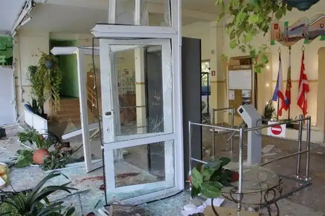 Вчера в Керчи произошла настоящая трагедия, в результате которой погибли 20 человек, а около 50 получили травмы и ранения. Виновным в нападении на Керченский политехнический колледж являлся студент 4 курса по имени Владислав Росляков, который смог пронести огнестрельное оружие и взрывное устройство в учебное заведение. Давайте посмотрим на ужасающие фотографии последствий взрыва в техникуме, которые вызывают еще больше вопросов. Неужели рамка металлодетектора и турникеты на входе были установлены лишь только в качестве мебели?