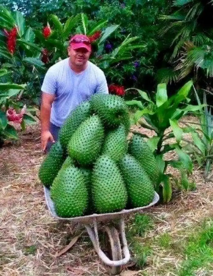 гуанабана, сметанное яблоко, тот самый суасеп, который добавляют в чай. Обычно она не более ладони человека, но вот такой урожай