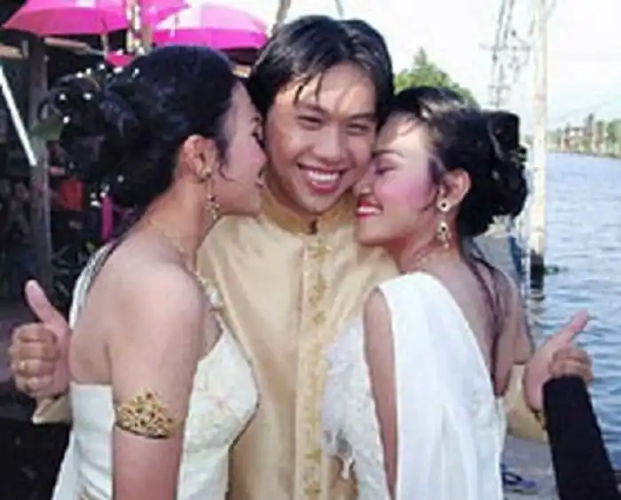 Этот 24-летний таец, сделавший бизнес на продаже антиквариата, женился сразу на двух сестрах-близнецах, поклявшись в равноценных чувствах к обоим.