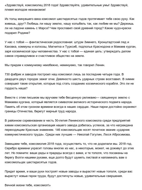 А вот и сам текст послания: