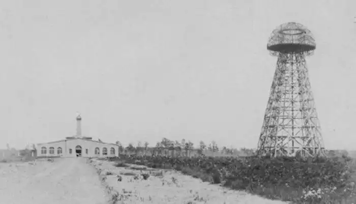 Первая беспроводная телекоммуникационная башня, созданная Николой Теслой, трансатлантической телефонии, радиовещания и беспроводной передачи электроэнергии.