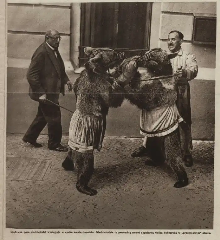 Пара медведей выступает в амстердамской цирке и умеют даже боксировать в подобающей спортивной форме. 1928 год.