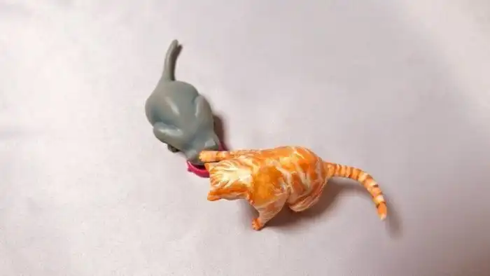 В основном его умелые руки ваяют котов. И выбирает он именно тех, чьи снимки сами по себе вводят в ступор. Где там что? Где его задние лапы? Как это он так лёг? Как это он так сел? Коты, вызывающие вопросы — его конёк!