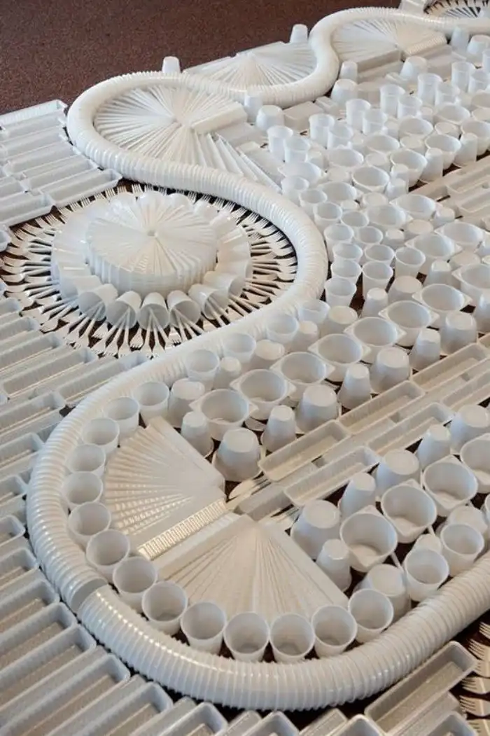 Ковер из одноразовой посуды - ходить по нему нельзя. но на стену повесить можно