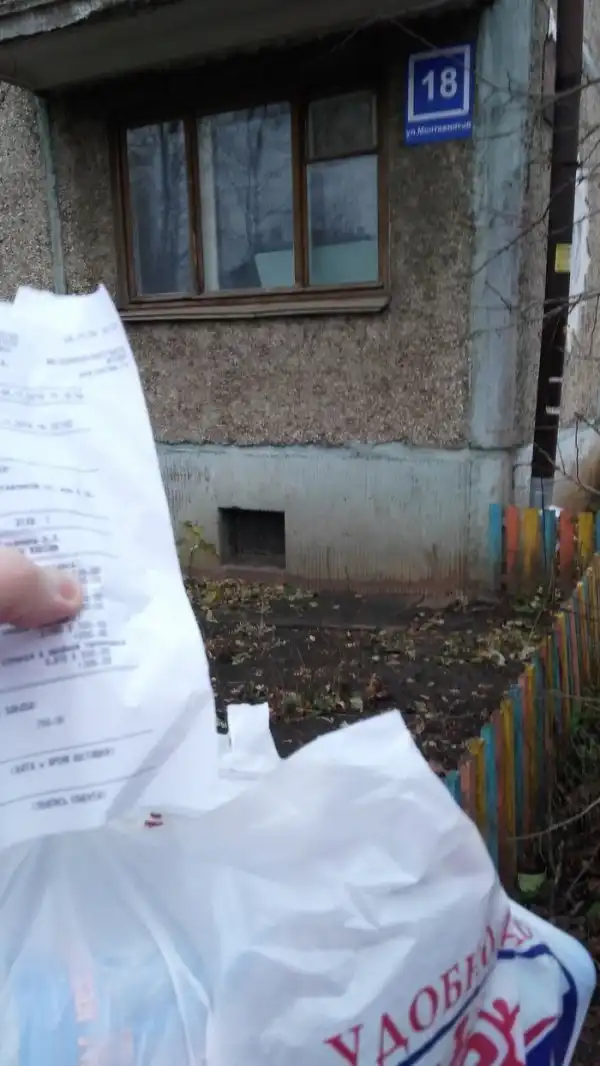 Когда он добрался до места назначения, бабушки в подъезде сразу же стали спрашивать, что это за пакет, и почему автор оставляет его под дверью у людей. Когда он объяснил всю ситуацию, бабули и сами стали стучать в дверь. Жильцы открыли дверь: