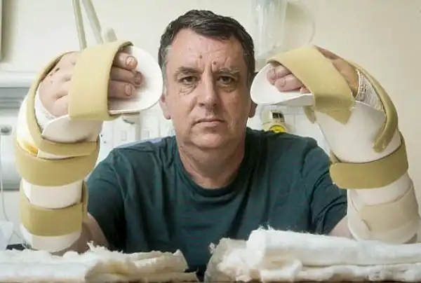 Британец Крис Кинг теперь может открыть входную дверь, налить себе чая и обнять свою племянницу впервые за пять лет после страшной аварии на производстве, когда ему оторвало обе руки. После двойной трансплантации рук донора (первой в Британии) и курса реабилитации Крису даже удалось написать благодарственную записку оперировавшему его профессору Саймону Кею.