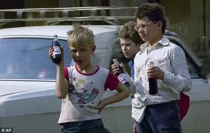 Московские школьники продают пепси-колу в бутылках мотоциклистам, май 1992 года.