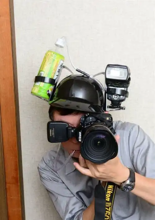 Когда дело касается профессиональной фотографии, всем абсолютно не важно, как выглядит фотограф, ведь самое главное - это получить качественный снимок. Давайте посмотрим на этого корейского фотографа, который решил переоборудовать шлем с держателями для пивных банок в свой профессиональный гаджет. Получилось очень даже удобное приспособление, хоть которое и выглядит весьма необычно.