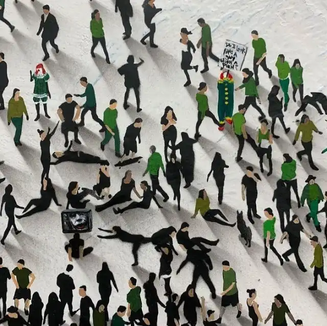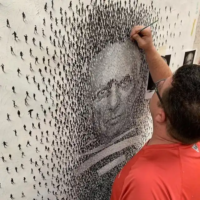 По сути, он создает удивительно детализированные картины, прорисовывая крошечные детали. Разглядывать такие картины можно часами на пролет, причем, вы все равно не рассмотрите все имеющиеся мелкие детали.