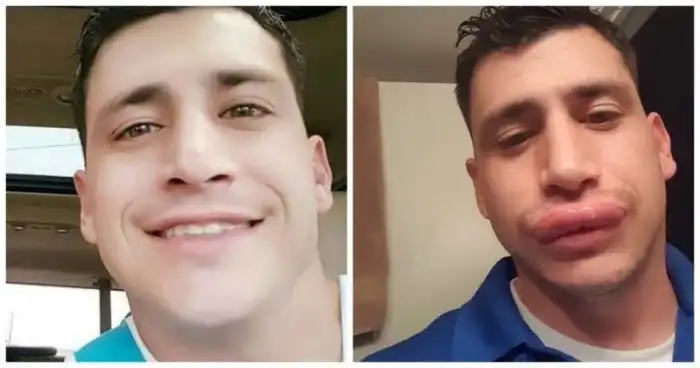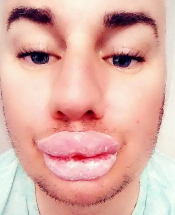 А этот парень потратил на увеличение губ... совсем ничего. Он ничего не закачивал в губы, его просто покусали осы