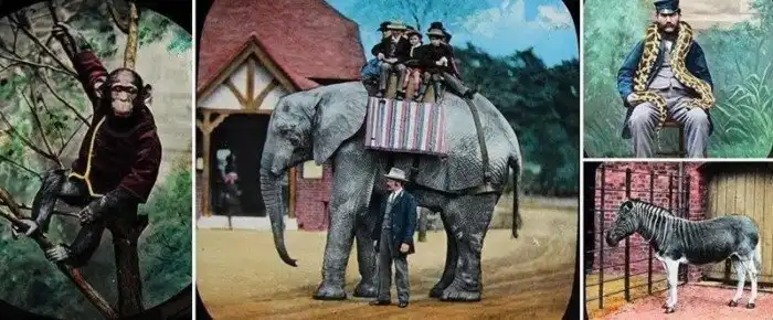 Редкая коллекция цветных слайдов, считающаяся самыми ранними изображениями животных лондонского зоопарка, появилась спустя почти 150 лет.
