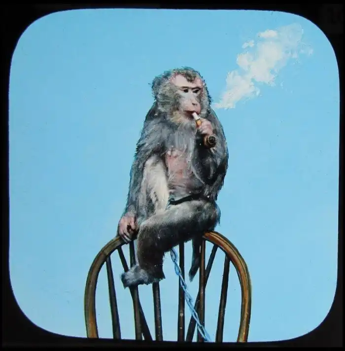 Также есть снимки, которые сегодня вызволи бы возмущение, например — обезьяна, курящая трубку.
