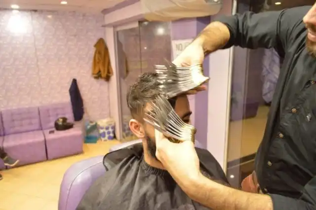 В одной из парикмахерских пакистанского города Гуджранвала работает настоящий "Эдвард Руки-ножницы". Зовут этого парня Мухаммад Аваи, и помимо того, что он стрижет посетителей, он еще и является владельцем этого заведения. Несмотря на то, что 26-летний парень открыл салон всего около полугода назад, у него уже нет отбоя от постоянных клиентов, которых очень впечатлила его необычная техника стрижки с использование 27 пар ножниц. В среднем на одну прическу у него уходит около 30 минут, а стоимость такой услуги составляет всего 4 доллара (270 рублей).