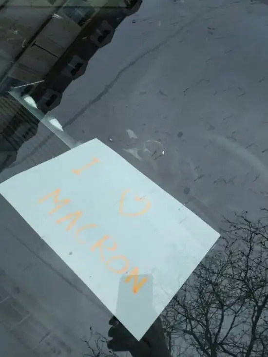 Надпись на записке: "Я люблю Макрона".
