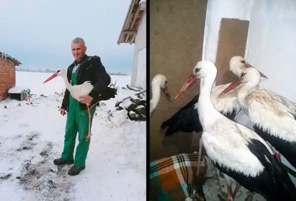 Весной в Болгарию прилетели аисты, а когда ударил мороз, они начали гибнуть. Сафит Халид приютил птиц у себя дома, согревал и кормил, пока не потеплело