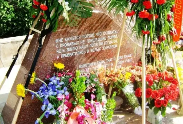 Каждый год в Лос-Анджелесском районе Западный Голливуд около пяти сотен ветеранов Великой Отечественной войны 9-го мая отмечают День Победы в местном парке Пламмер. Они отправили коллективный запрос властям на установку памятника, и городские чиновники установили его. На 7-тонной плите из красного гранита отображены белые журавли, а также написаны строчки Расула Гамзатова.
