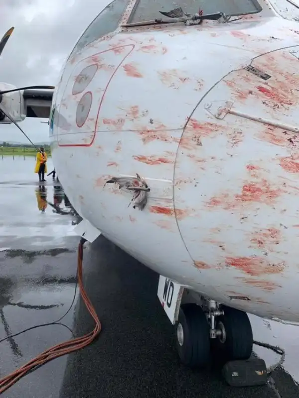 Экипаж и пассажиры авиалайнера ATR 72-500, который совершил несколько дней назад посадку в танзанийском аэропорту Мванза испытали несколько неприятных минут. Траектория самолета пересекла стая птиц, повредив стойки шасси и несколько иллюминаторов.