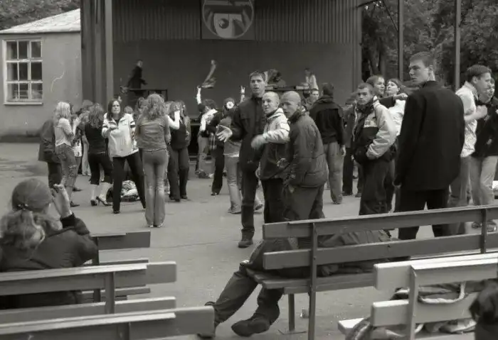 Выпускники в парке. Из цикла «Калининград. На краю». Дмитрий Вышемирский, 1990-е, Калининградская область, из архива Дмитрия Вышемирского.