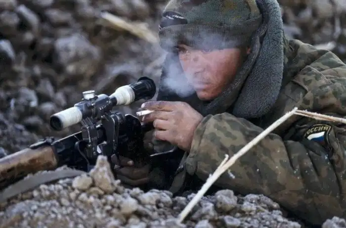 Солдат в Чечне. Владимир Вяткин, 1999 год, Чеченская Республика, из архива МАММ/МДФ.