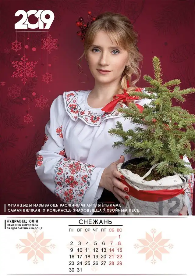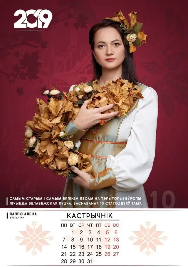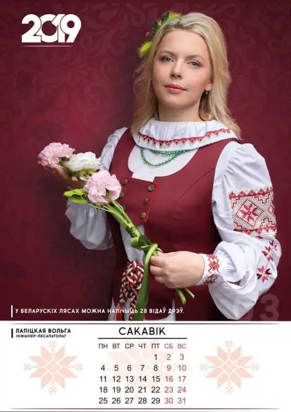 Мы привыкли к работницам заводов, служащим БЖД и представительницам групп поддержки спортивных команд, но очередной календарь нежданно подкрался из лесхоза. А именно из ГЛХУ «Белыничский лесхоз». Что такое ГЛХУ, надо гуглить, но главное, что получился сдержанный и приятный календарь. Нет больного на голову фотошопа и попыток доказать наличие вкуса, что зачастую означает обратное. Создатели объясняют, мол, реализовали проект к продленному на 2019-й Году малой родины и скреативили. На страницах предстали работницы Белыничского лесхоза от экономиста до техника-радиолога. Календарь будет использоваться в качестве сувенира. Для любителей лесов на каждой странице есть энциклопедическая справка по теме.