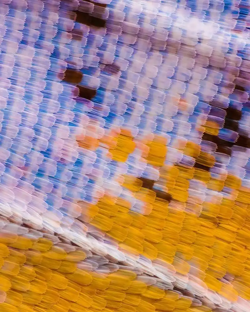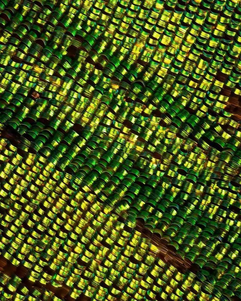 На первый взгляд может показаться, что это чешуя диковинных рыб, но на самом деле вы смотрите на крылья бабочек! Американский фотограф Крис Перани демонстрирует эту потрясающую красоту с помощью экстремальной макросъемки. Объектив микроскопа с 10-кратным увеличением, прикрепленный к 200-миллиметровому объективу камеры, помогает создать невероятную глубину резкости. Инджой!
