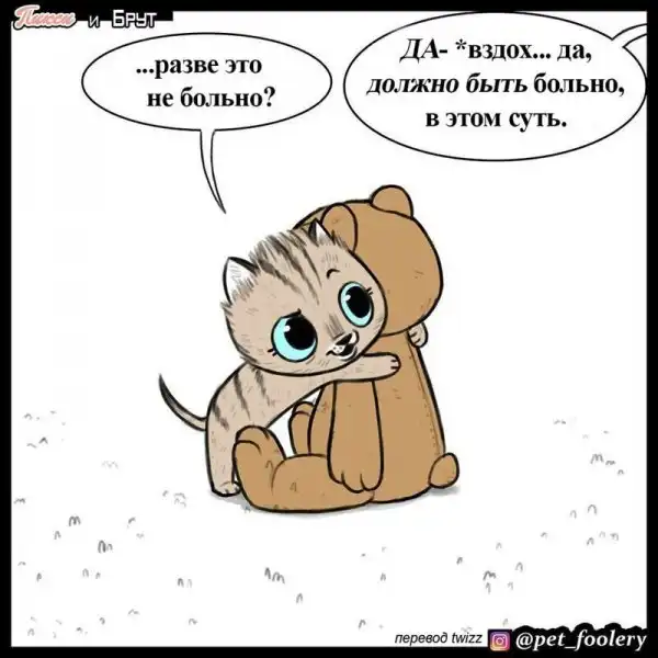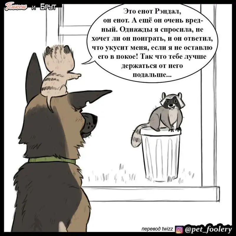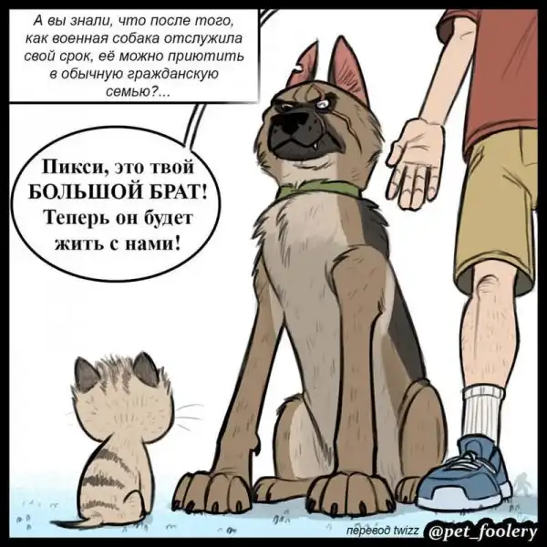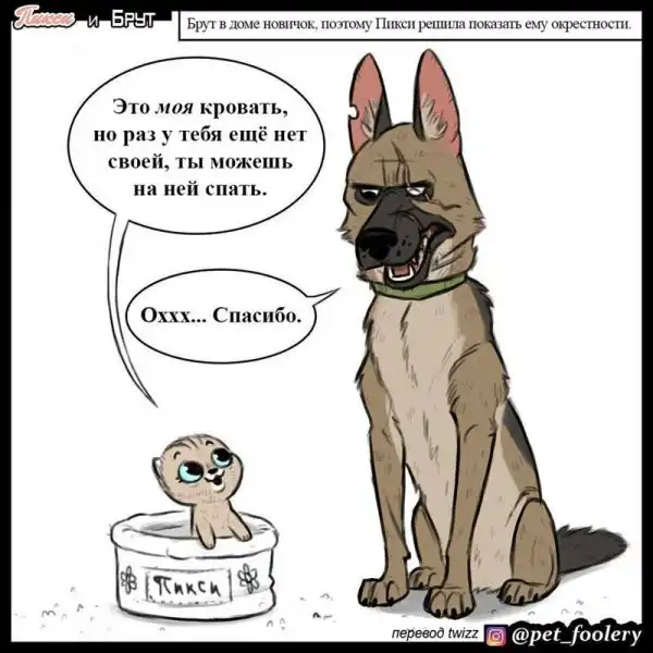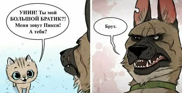 Авторы комиксов, работающие под псевдонимом Pet Foolery , создают забавные и приятные нарисованные истории про животных. Но настоящим прорывом для них стало появление персонажей Пикси и Брута — кошечки и бывалого пса, которых полюбили ВСЕ. Наивность и милашность Пикси удивительно удачно сочетается с жёсткостью и устрашающим видом овчарки Брута. Вместе они просто прелестны!