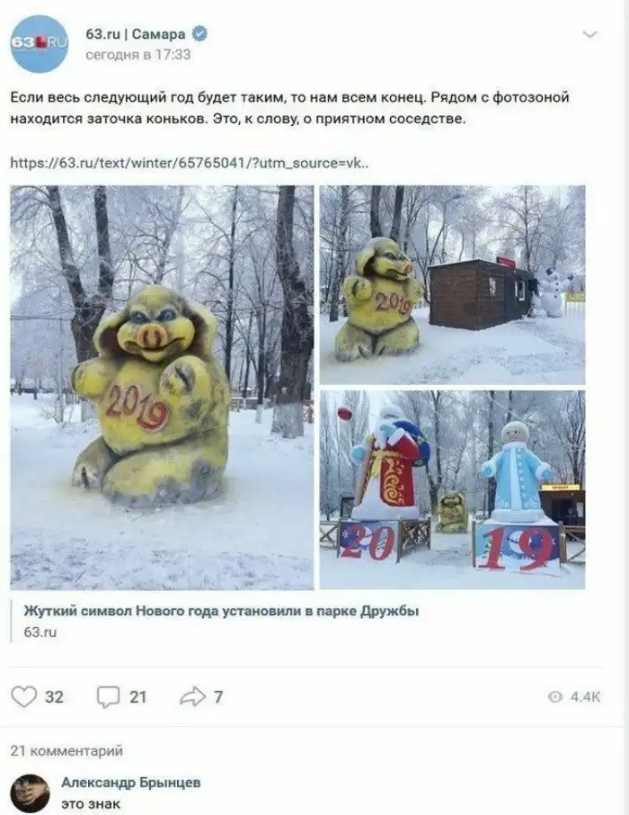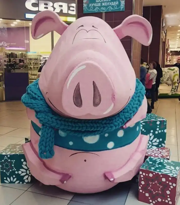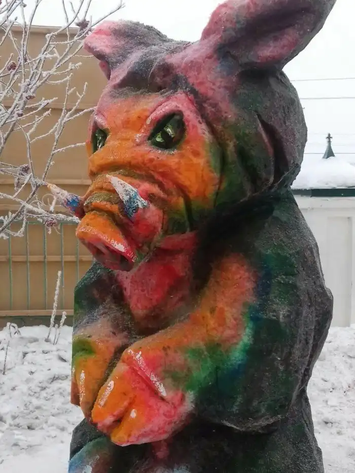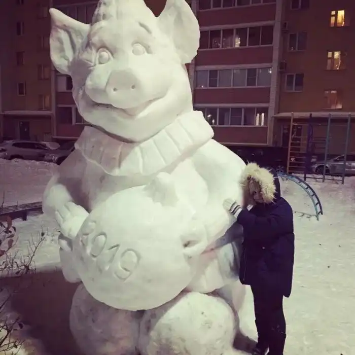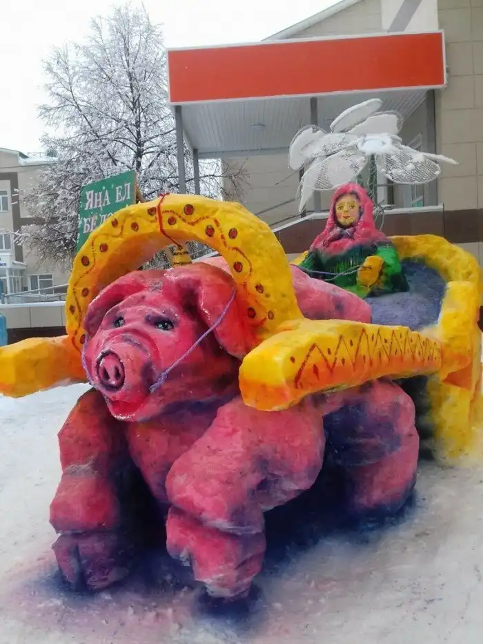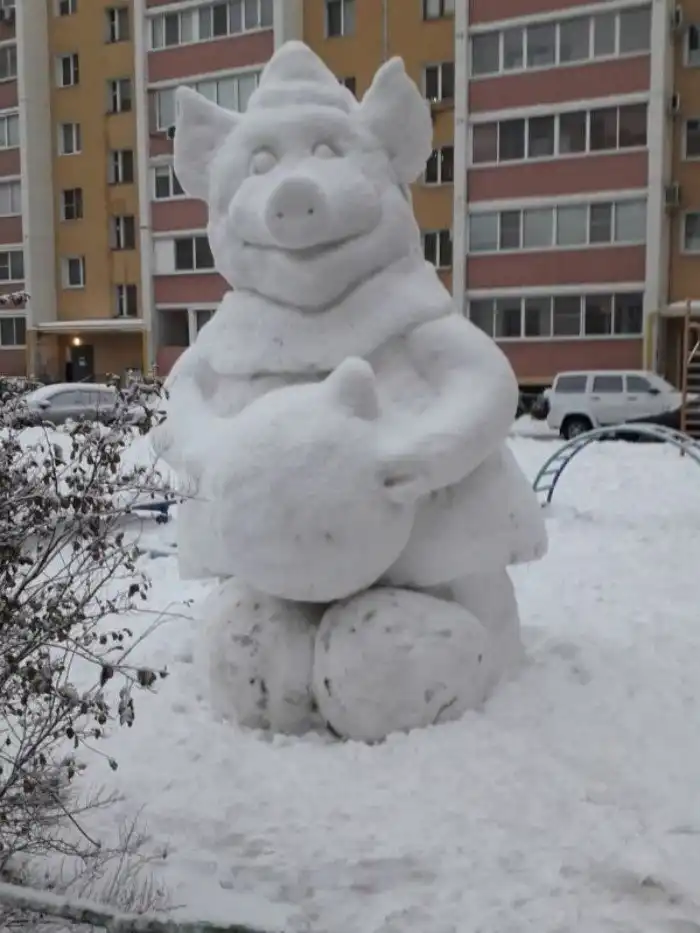 Наступает Новый год Свиньи, и вдруг откуда ни возьмись повыползали народные умельцы, которые стали мастерить из снега и навоза - в общем, из всего подряд, скульптуры свиней. Украшают города, говорят они. Ну, это как посмотреть. Кому и свинья - украшение.