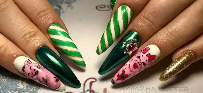 Новогодний маникюр со свиньями? Пожалуйста!