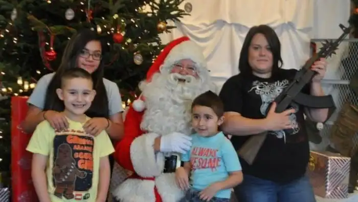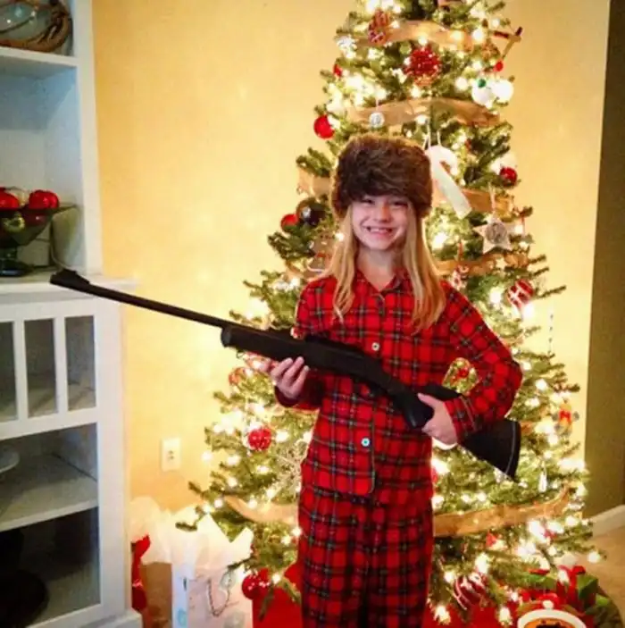 Многие американцы очень любят оружие, а лучший подарок для них на Рождество — новый “ствол”. Люди позируют на фоне ёлок с подаренным оружием и выкладывают фото в социальные сети. Среди тех, кто хвастается своем оружием в Instagram и Twitter, есть подростки и дети.