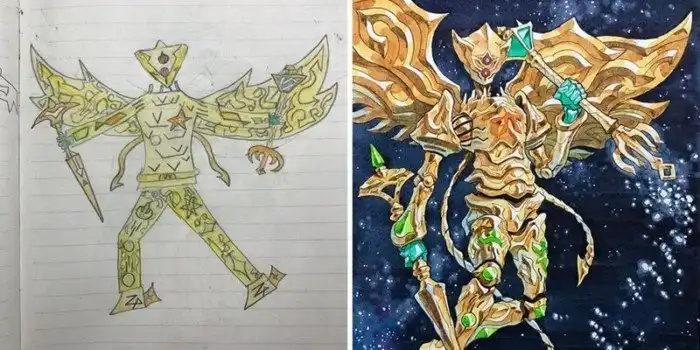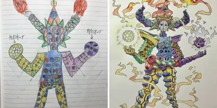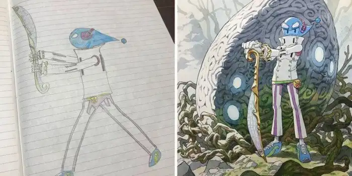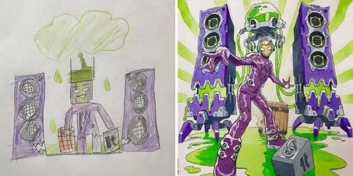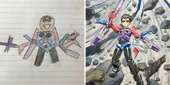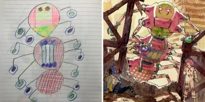 Специализирующийся на аниме французский художник Томас Ромейн сейчас живёт и работает в Токио и в свободное время приобщает к творчеству своих детей. Мужчина создает иллюстрации, вдохновляясь рисунками маленьких сыновей.
