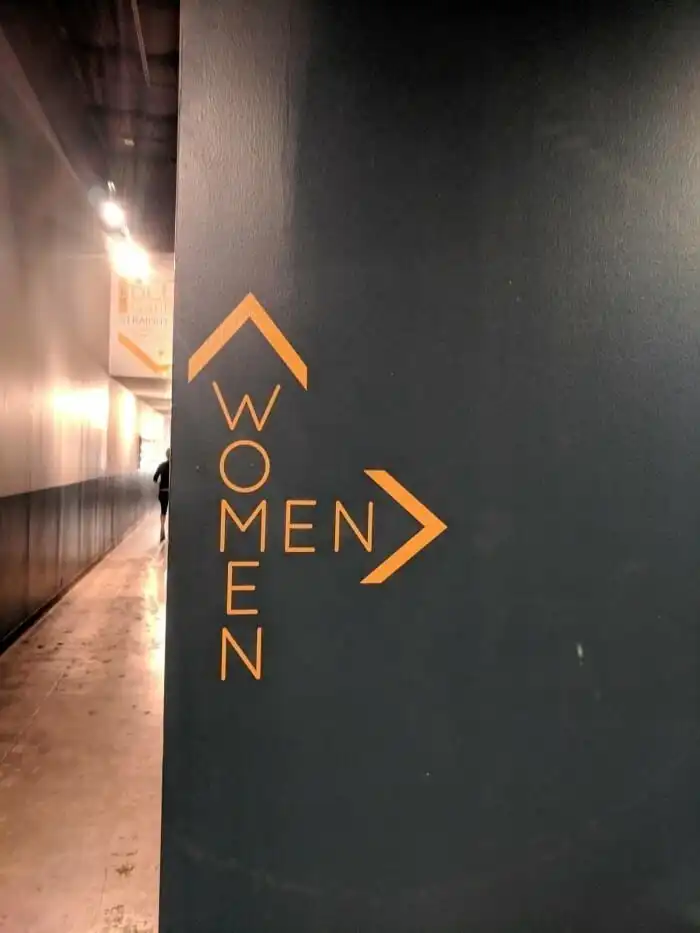 Необычно и стильно оформленный указатель к мужской и женской уборной