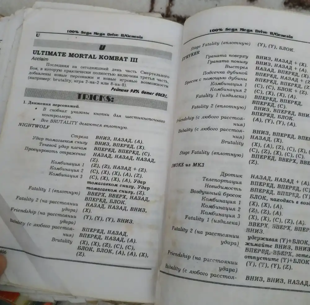 Листая страницы, сразу же вспомнилось то, как искал и запоминал секреты к различным видеоиграм в молодости. Когда жена сказала: "Давай их выкинем, зачем это тебе?", пришлось их снова перепрятать, чтобы не выбрасывать. Рука не поднимается просто так взять и выкинуть часть своего детства.