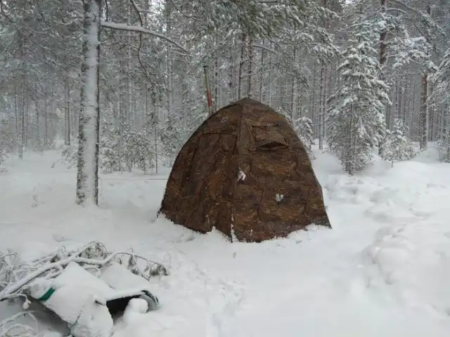 Благодаря печке, в палатке поддерживается комфортная температура в +20 градусов.