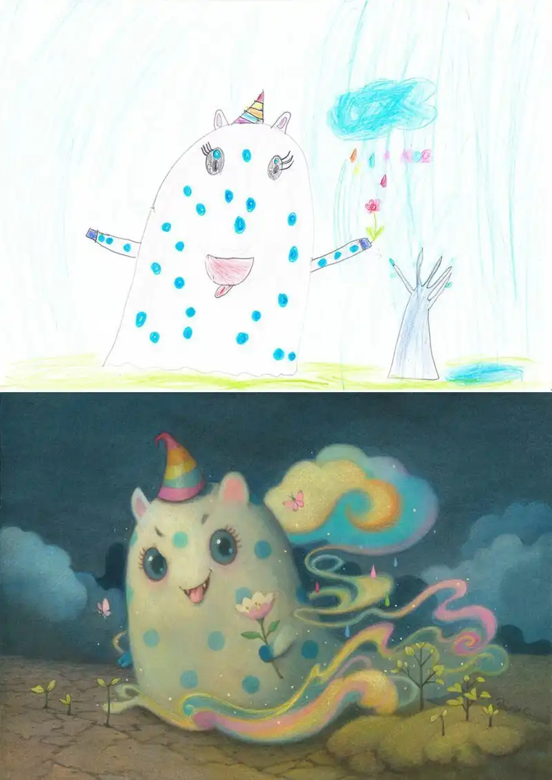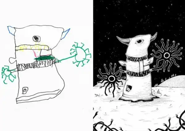 В этом году проект "The Monster Project" празднует свое четырехлетие. Профессиональные художники интерпретируют рисунки учеников начальных классов в собственной технике, а затем возвращают обновленные иллюстрации детям, чтобы продемонстрировать новые художественные приемы.