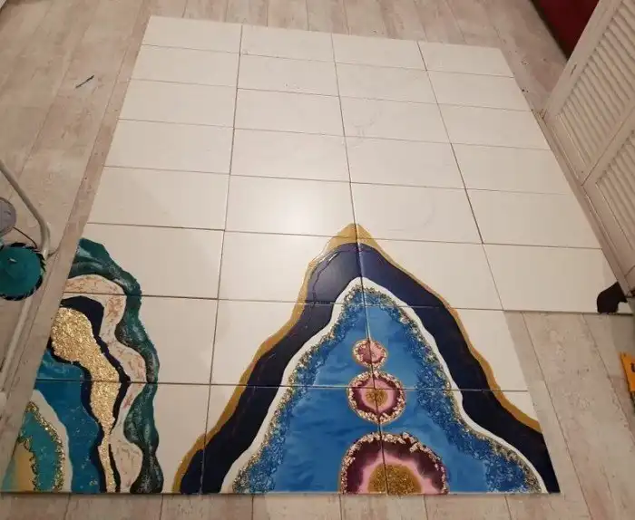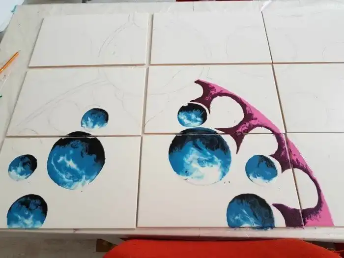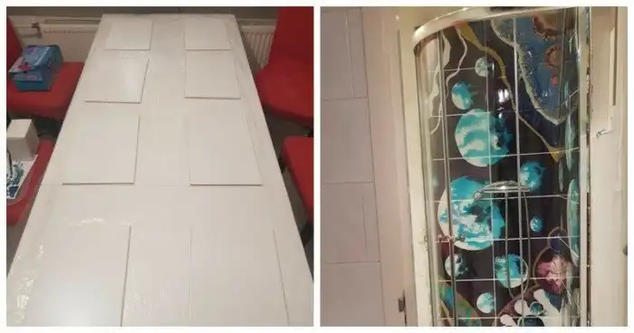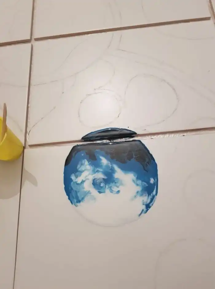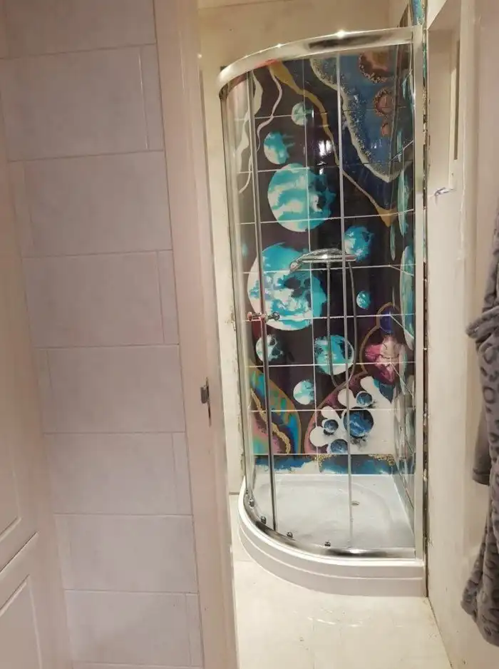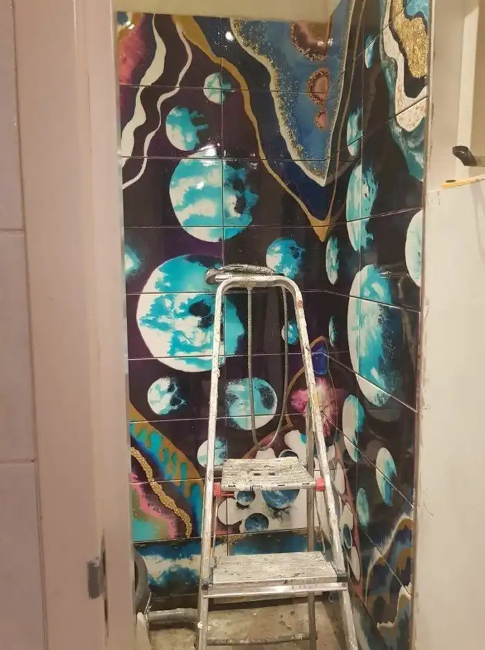 Ивета Шедбариене преобразила наскучившую душевую собственными силами, причем без особых материальных затрат. Почти четыре месяца девушка расписывала белую плитку, придавая ей галактический вид. Из материалов Ивета использовала краски и эпоксидную смолу. Результат - просто космос!