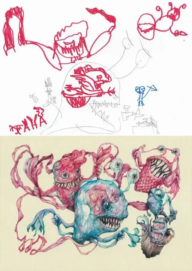 Когда детские рисунки перерисовывают профессиональные иллюстраторы