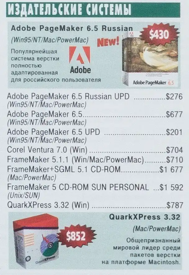 Еще больше софта. Пока нет облачных подписок на продукцию Adobe, и можно купить программу один раз и навсегда. Интересно будет попробовать раннюю версию Adobe Premiere: в буклете рекламируется версия 4.2 под Windows 95.