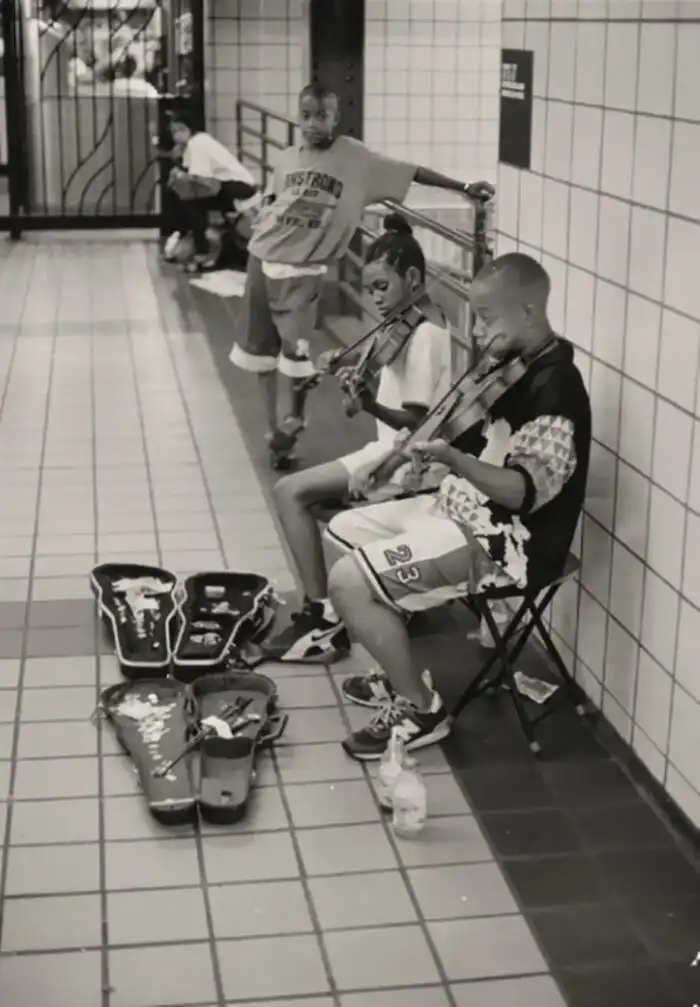 Как ещё лучше можно запечатлеть город, если не вылазкой в те места, где смешиваются национальности, культуры и личности, и одним из таких мест в Нью-Йорке является его подземка — метро. «Подавляющее большинство предметов, которые я фотографировал, были совершенно незнакомыми людьми, с которыми я встречался во время своих многочисленных экспедиций на поезде. Я фокусировал свой взгляд на всём: на студентах, полицейских, бездомных, артистах и обычных людях, которые занимаются своими повседневными делами», — говорит Шабазз.