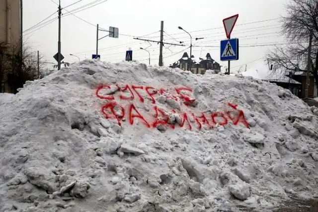 Хотелось бы верить, что с этих сугробов просто не "соскребут" надписи, оставив сами снежные завалы до весны...