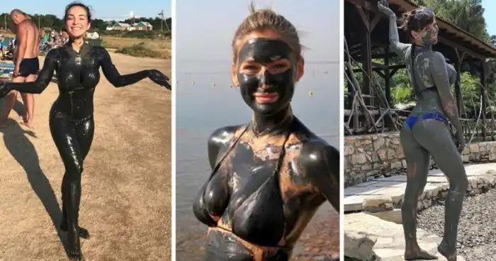 Следующие 3 девушки наивно думают, что лесная грязь тоже обладает целебными свойствами. Вряд ли, но настроение у них отличное!