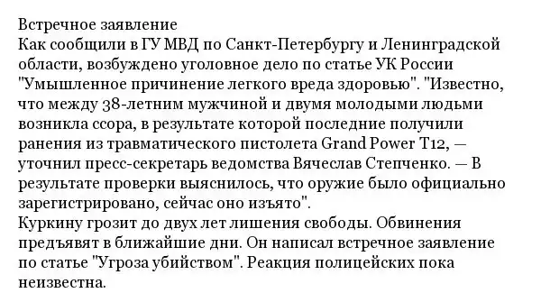 История одного жителя Санкт-Петербурга вызвала настоящую шумиху в социальных сетях, ведь он защищал свою жизнь, а теперь может попасть на два года в колонию. Полицейские разбираются в уголовном деле об "умышленном причинении легкого вреда здоровью", в котором потерпевшими называют нескольких ранее судимых молодых людей, а подозреваемым - 38-летнего отца двоих детей Кирилла Куркина. По словам Кирилла, молодые люди в состоянии алкогольного опьянения собирались проломить ему череп кирпичом, поэтому ему пришлось использовать травматическое оружие. Читаем всю историю далее.