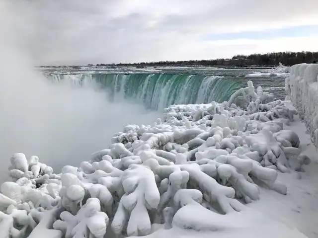 Туристы стали делиться в сети необычными фотографиями частично замерзшего Ниагарского водопада. Причиной для такого редкого явления стали сильные морозы, которые обрушились на северо-восток США. По словам туристов, температура воздуха на момент создания некоторых из этих фотографий опускалась до отметки в минус 25 градусов. Синоптики предупреждают, что следующая неделя в этом регионе будет еще холоднее.
