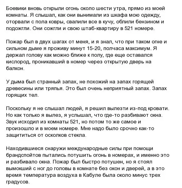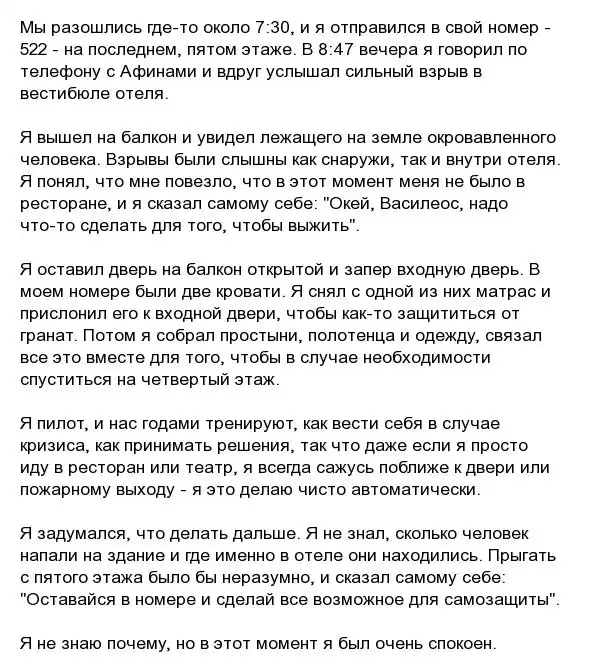 Около года назад греческий пилот по имени Василис Василеу заселился в один из дорогих отелей Intercontinental в Кабуле, но он даже и представить себе не мог, что станет свидетелем ужасающих событий. 20 января 2018 года талибы осуществили нападение на этот популярный отель, где были убиты около 40 человек. Василеу выжил во время этого инцидента и рассказал, как ему это удалось. Читаем его.