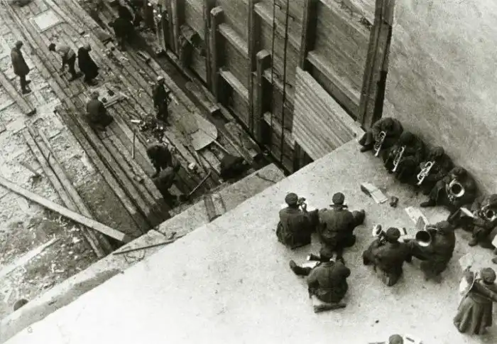 Работа под оркестр на строительстве Беломорканала. СССР. 1933 год.