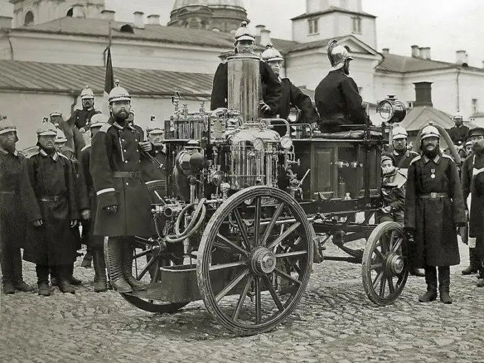 Первая пожарная машина в городе. Российская империя, Казань. 1900–е годы.