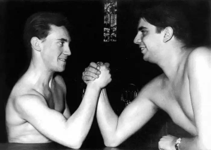 Армрестлинг Владимира Высоцкого с Александром Виленским. Москва. 1958-1959 годы.